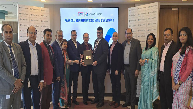 প্রাইম ব্যাংক পিএলসির কাছ থেকে সমন্বিত পেরোল ব্যাংকিং সেবা গ্রহণ করবে টিমটেক্স গ্রুপের সহযোগী প্রতিষ্ঠান ব্যান্ডো ইকো অ্যাপারেলস লিমিটেড। সম্প্রতি ব্যাংকের কর্পোরেট অফিসে আয়োজিত এক অনুষ্ঠানে এ বিষয়ে উভয় প্রতিষ্ঠানের মধ্যে একটি চুক্তি স্বাক্ষরিত হয়।