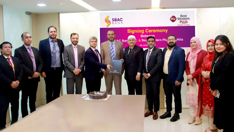 এসবিএসি ব্যাংক পিএলসি এবং কক্সবাজারের হিমছড়িতে অবস্থিত বেস্ট ওয়েস্টার্ন প্লাস বে হিলস হোটেলের মধ্যে সম্প্রতি ব্যাংকের প্রধান কার্যালয়ে এক সমঝোতা স্মারক স্বাক্ষরিত হয়েছে।