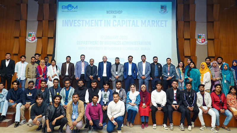 বাংলাদেশ ইন্সটিটিউট অব ক্যাপিটাল মার্কেট (বিআইসিএম) বিজিএমইএ ইউনিভার্সিটি অব ফ্যাশন এন্ড টেকনোলজি (বিইউএফটি)-এর বিজনেস এডমিনিস্ট্রেশন বিভাগের শিক্ষার্থীদের নিয়ে “ইনভেস্টমেন্ট ইন ক্যাপিটাল মার্কেট” শীর্ষক বিনিয়োগ শিক্ষা প্রশিক্ষণ আয়োজন করেছে। আজ সোমবার (১২ জানুয়ারি) বিইউএফটি’র মাল্টিপারপাস হলে এ বিনিয়োগ শিক্ষা প্রোগ্রাম অনুষ্ঠিত হয়।