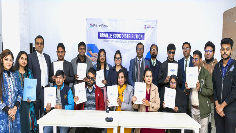 অন্তর্ভুক্তিমূলক ব্যাংকিং নিশ্চিত করার লক্ষ্যে দৃষ্টিপ্রতিবন্ধী ব্যক্তিদের মাঝে ব্রেইল বই বিতরণ করেছে প্রাইম ব্যাংক পিএলসি। প্রাইম ব্যাংকের উদ্যোগে ও টীম ইনক্লুশন বাংলাদেশ-এর সহযোগিতায় সম্প্রতি সাভারে আয়োজিত অনুষ্ঠানে এসব বই বিতরণ করা হয়। অনুষ্ঠানে সবার জন্য আর্থিক জ্ঞান সহজলভ্য করার প্রতিশ্রুতি পুনর্ব্যক্ত করে প্রাইম ব্যাংক।