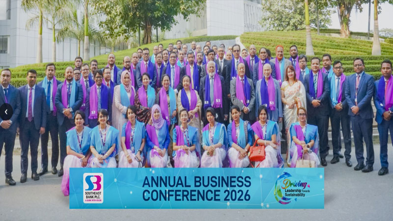 সাউথইস্ট ব্যাংক পিএলসি’র “বার্ষিক ব্যবসায়িক সম্মেলন ২০২৬” শনিবার (২৪ জানুয়ারি) অনুষ্ঠিত হয়েছে। সম্মেলনে প্রধান অতিথি হিসেবে উপস্থিত ছিলেন ব্যাংকের চেয়ারম্যান জনাব এম. এ. কাশেম, এবং সভাপতিত্ব করেন ব্যবস্থাপনা পরিচালক জনাব মো. খালিদ মাহমুদ খান।