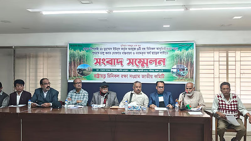 সংবাদ সম্মেলনে আহ্বায়ক কারুজ্জামান ফিরোজ জানান, ২০২৪ সালের নভেম্বরে জাতীয় গণফ্রন্ট এবং জাতীয় মুক্তি কাউন্সিলের নেতাদের সঙ্গে প্রধান উপদেষ্টা মুহাম্মদ ইউনূসের সাক্ষাতের সময় বন্ধ ছয়টি চিনিকল আধুনিক করে পুনরায় চালুর সিদ্ধান্ত হয়েছিল। পরবর্তীতে এক অধ্যাদেশের মাধ্যমে চিনিকলগুলো চালু করার ঘোষণাও আসে। কিন্তু অর্থ মন্ত্রণালয় থেকে প্রয়োজনীয় বরাদ্দ না দিয়ে উল্টো আখমাড়াই কার্যক্রম স্থগিত রাখার নির্দেশনা দেওয়া হয়েছে বলে গণমাধ্যমকে জানানো হয়।