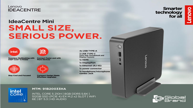 লেনোভোর অনুমোদিত পরিবেশক গ্লোবাল ব্র্যান্ড পিএলসি বাংলাদেশের ডেস্কটপ বাজারে নতুন সংযোজন এনেছে। প্রতিষ্ঠানটি সম্প্রতি দেশের বাজারে সরবরাহ শুরু করেছে বিশ্বখ্যাত প্রযুক্তি ব্র্যান্ড লেনোভোর আইডিয়া সেন্টার মিনি ডেস্কটপ (মডেল: ৯১বি২০০৩৩এইচএ)। আধুনিক ডিজাইন ও শক্তিশালী পারফরম্যান্সের সমন্বয়ে ডিভাইসটি প্রফেশনাল ব্যবহারকারীদের লক্ষ্য করে বাজারে আনা হয়েছে।