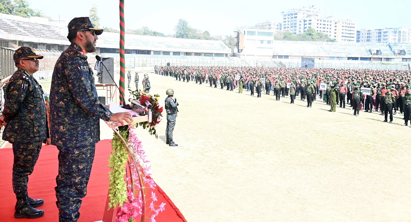 রবিবার আসন্ন জাতীয় সংসদ নির্বাচন ও গণভোট উপলক্ষ্যে বাহিনী সদস্যদের এক সমাবেশে তিনি এ কথা বলেন।