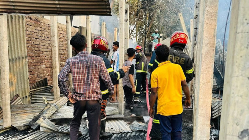 সোনারগাঁয়ে অগ্নিকাণ্ডে পুড়ে ছাই ১৮ পরিবারের বসতঘর