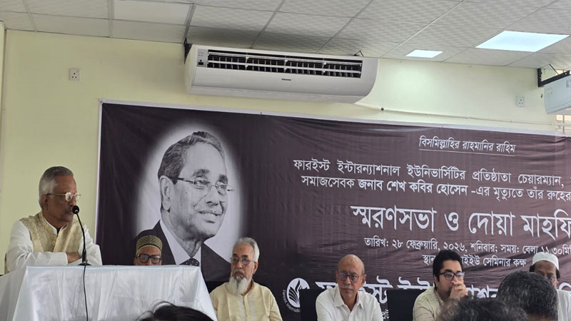 ফারইস্ট ইন্টারন্যাশনাল ইউনিভার্সিটি (এফআইইউ)–এর বোর্ড অব ট্রাস্টিজের প্রতিষ্ঠাতা চেয়ারম্যান মরহুম শেখ কবির হোসেনের রুহের মাগফেরাত কামনায় এফআইইউ পরিবারের উদ্যোগে শনিবার (২৮ ফেব্রুয়ারি) বেলা ১১ টা ৩০ মিনিটে বিশ্ববিদ্যালয়ের স্থায়ী ক্যাম্পাস (প্লট-১ ও ২, রোড-১ ও ২, সেক্টর-১৬/আই, উত্তরা, ঢাকা-১২৩০)–এর সেমিনার কক্ষে এক স্মরণসভা ও দোয়া মাহফিল অনুষ্ঠিত হয়।