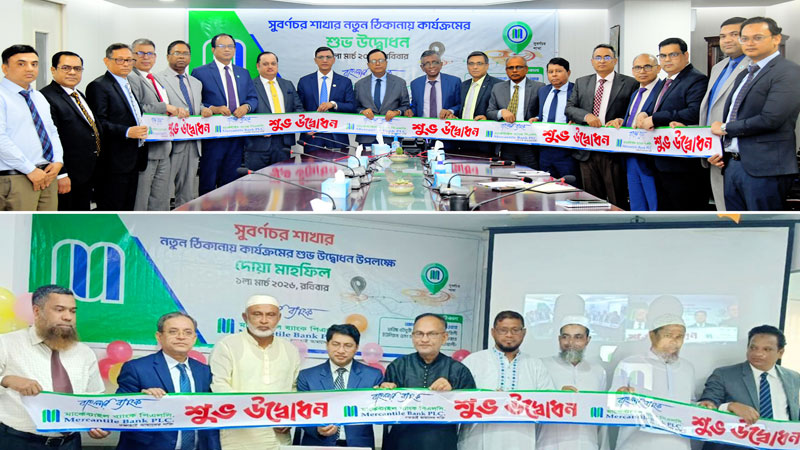 বৃহৎ পরিসরে আধুনিক ও উন্নত গ্রাহক সেবা দেওয়ার লক্ষ্যে মার্কেন্টাইল ব্যাংক পিএলসি-এর ‘সুবর্ণচর শাখা’ স্থানান্তরিত হয়ে নোয়াখালীর চরজব্বর থানার ৫নং চরজুবিলী ইউনিয়নের হারিছ চৌধুরী বাজারে অবস্থিত আনোয়ারা-ইসমাইল টাওয়ারে আজ রবিবার (০১ মার্চ) থেকে কার্যক্রম শুরু করেছে।
