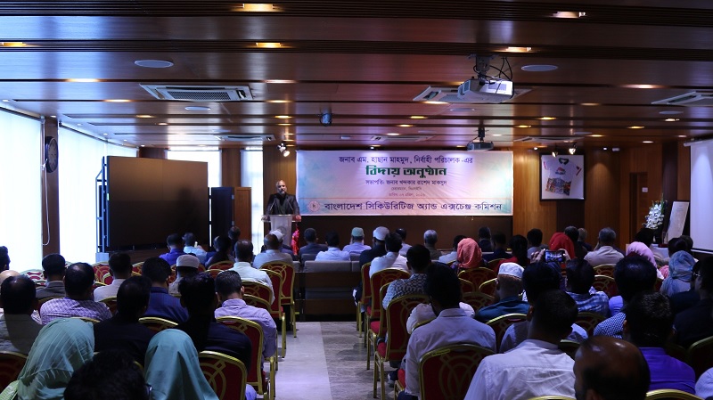 বাংলাদেশ সিকিউরিটিজ অ্যান্ড এক্সচেঞ্জ কমিশনের (বিএসইসি) নির্বাহী পরিচালক এম. হাছান মাহমুদ তাঁর চাকরিকাল শেষে অবসর গ্রহণপূর্বক অবসর-উত্তর ছুটিতে গমন উপলক্ষে গত মঙ্গলবার (৭ এপ্রিল) বিকাল ৩:১৫ ঘটিকায় কমিশনের মাল্টিপারপাস হলে একটি বিদায় অনুষ্ঠানের আয়োজন করা হয়।