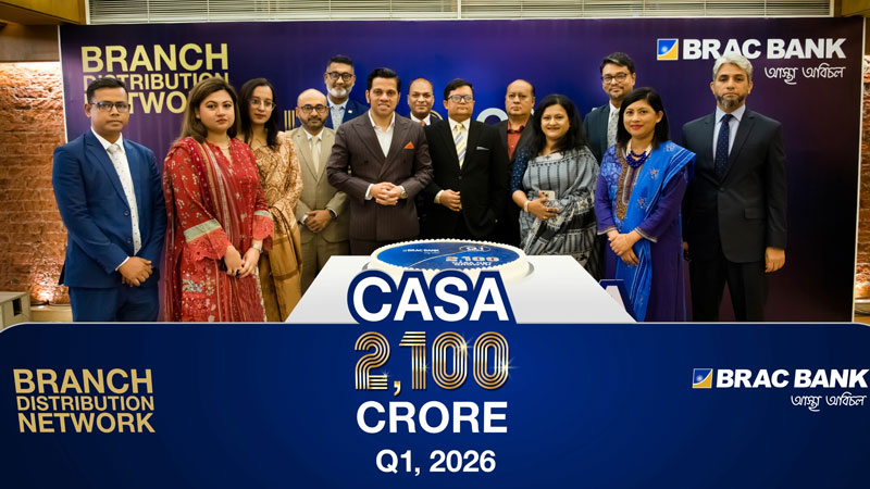 ব্র্যাক ব্যাংকের ব্রাঞ্চ ডিস্ট্রিবিউশন নেটওয়ার্ক ২০২৬ সালের প্রথম প্রান্তিকে কারেন্ট অ্যাকাউন্ট ও সেভিংস অ্যাকাউন্ট (কাসা)-এ ২,১০০ কোটি টাকার নিট আমানত প্রবৃদ্ধি অর্জন করেছে। এটি ব্যাংকের ইতিহাসে এই খাতে অন্যতম শক্তিশালী পারফরম্যান্স।