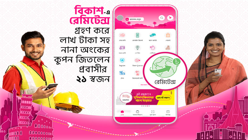 রমজান মাসজুড়ে বিকাশ-এ রেমিটেন্স গ্রহণ করে এক লাখ টাকা সহ বিভিন্ন অঙ্কের কুপন জিতেছেন প্রবাসীদের ২১ জন স্বজন। রমজান ও ঈদকে সামনে রেখে দেশে থাকা প্রিয়জনের কাছে সবচেয়ে সহজে, বৈধপথে, নিরাপদে তাৎক্ষণিক রেমিটেন্স পাঠাতে উৎসাহিত করতে এই বিশেষ ক্যাম্পেইনের আয়োজন করে বিকাশ। বিজয়ীদের কুপনগুলো সরাসরি তাদের বিকাশ অ্যাকাউন্টে পাঠিয়ে দেওয়া হয়েছে।