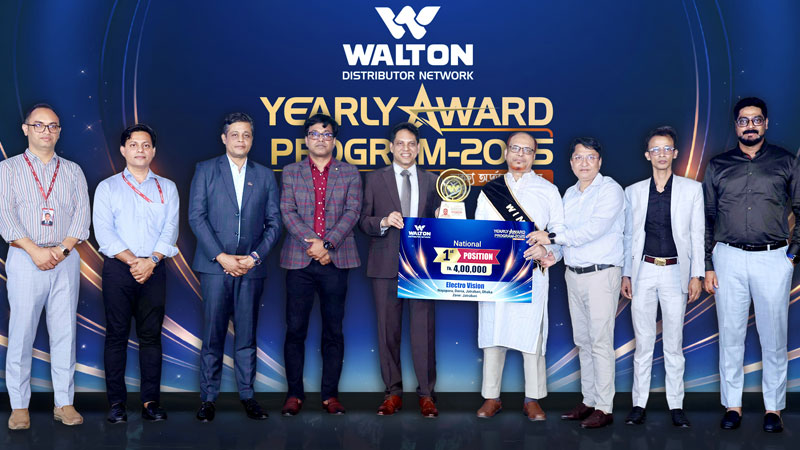 দেশজুড়ে ১৬৮ পরিবেশককে পুরস্কৃত করেছে ইলেকট্রনিক্স ও হোম অ্যাপ্লায়েন্স খাতের সুপরিচিত ব্র্যান্ড ওয়ালটন। ২০২৫ সালে প্রতিষ্ঠানটির ডিজিটাল ক্যাম্পেইনের ব্যাপক প্রচার-প্রচারণার মাধ্যমে পণ্য বিপণনে বিশেষ অবদান রাখায় তাদেরকে পুরস্কৃত করা হয়।