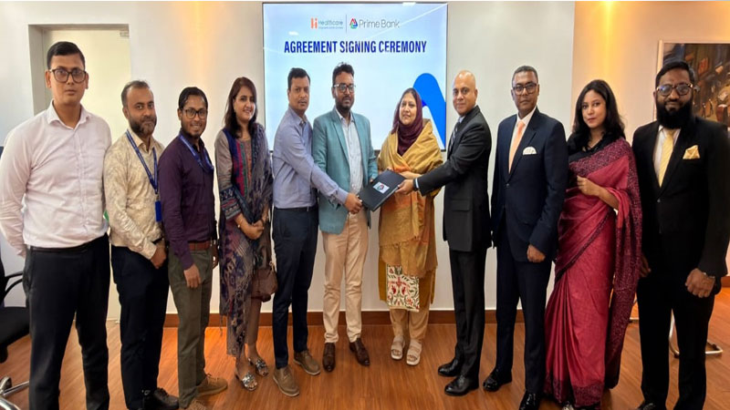 স্বাস্থ্য পরীক্ষায় গ্রাহকদের বিশেষ সুবিধা দিতে হেলথকেয়ার ডায়াগনস্টিক সেন্টার লিমিটেড, হেলথকেয়ার ফার্মাসিউটিক্যালের অঙ্গ প্রতিষ্ঠান এর সঙ্গে একটি কৌশলগত চুক্তি স্বাক্ষর করেছে প্রাইম ব্যাংক পিএলসি। সম্প্রতি গুলশান এভিনিউয়ে প্রাইম অ্যাসপায়ারে আয়োজিত এক অনুষ্ঠানে প্রতিষ্ঠান দুটি এ সম্পর্কিত একটি চুক্তি স্বাক্ষর করে।