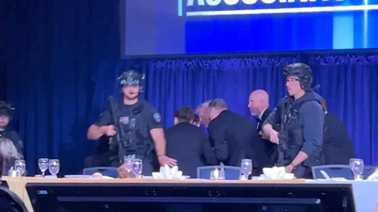 যুক্তরাষ্ট্রের ওয়াশিংটন ডিসির হিল্টন হোটেলে হোয়াইট হাউজের সাংবাদিকদের জন্য নৈশভোজের আয়োজনে গুলির শব্দের পর জরুরি ভিত্তিতে প্রেসিডেন্ট ডনাল্ড ট্রাম্পকে সরিয়ে নেয়া হয়েছে।