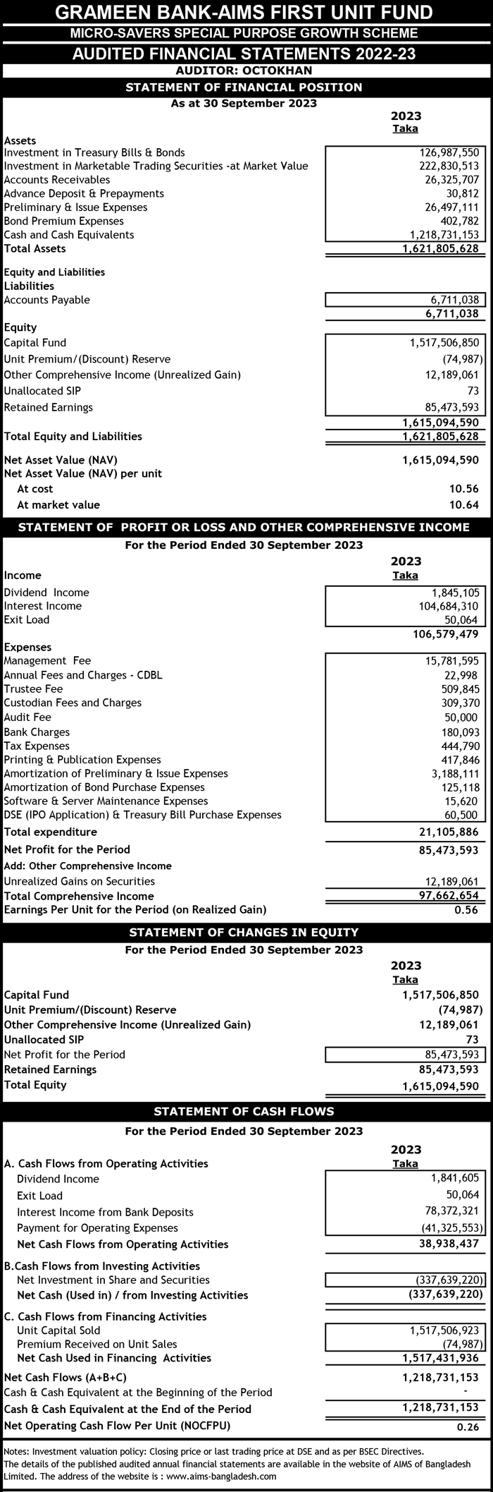 Price Sensitive Information of Grameen Bank-AIMS First Unit Fund