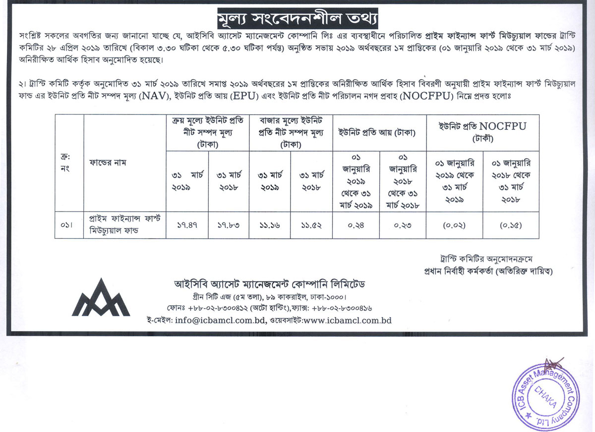 Price Sensitive Information of Investment Corporation of Bangladesh (ICB)