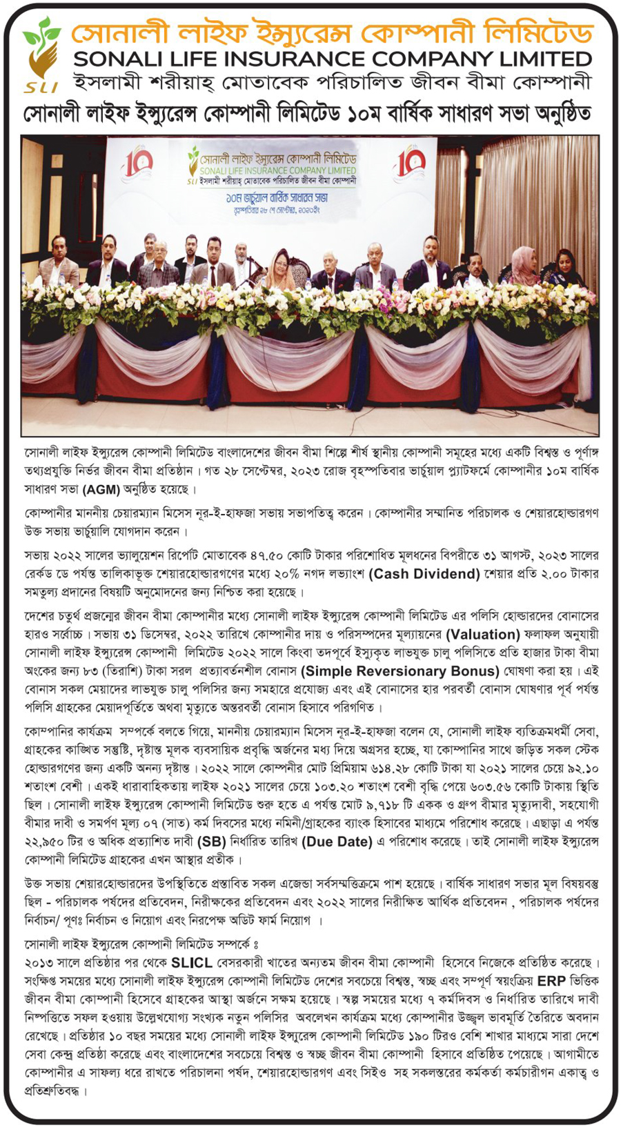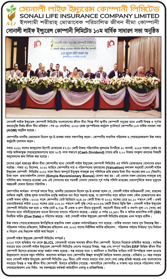 Notice of the 10th AGM of Sonali Life Insurance Company Limited