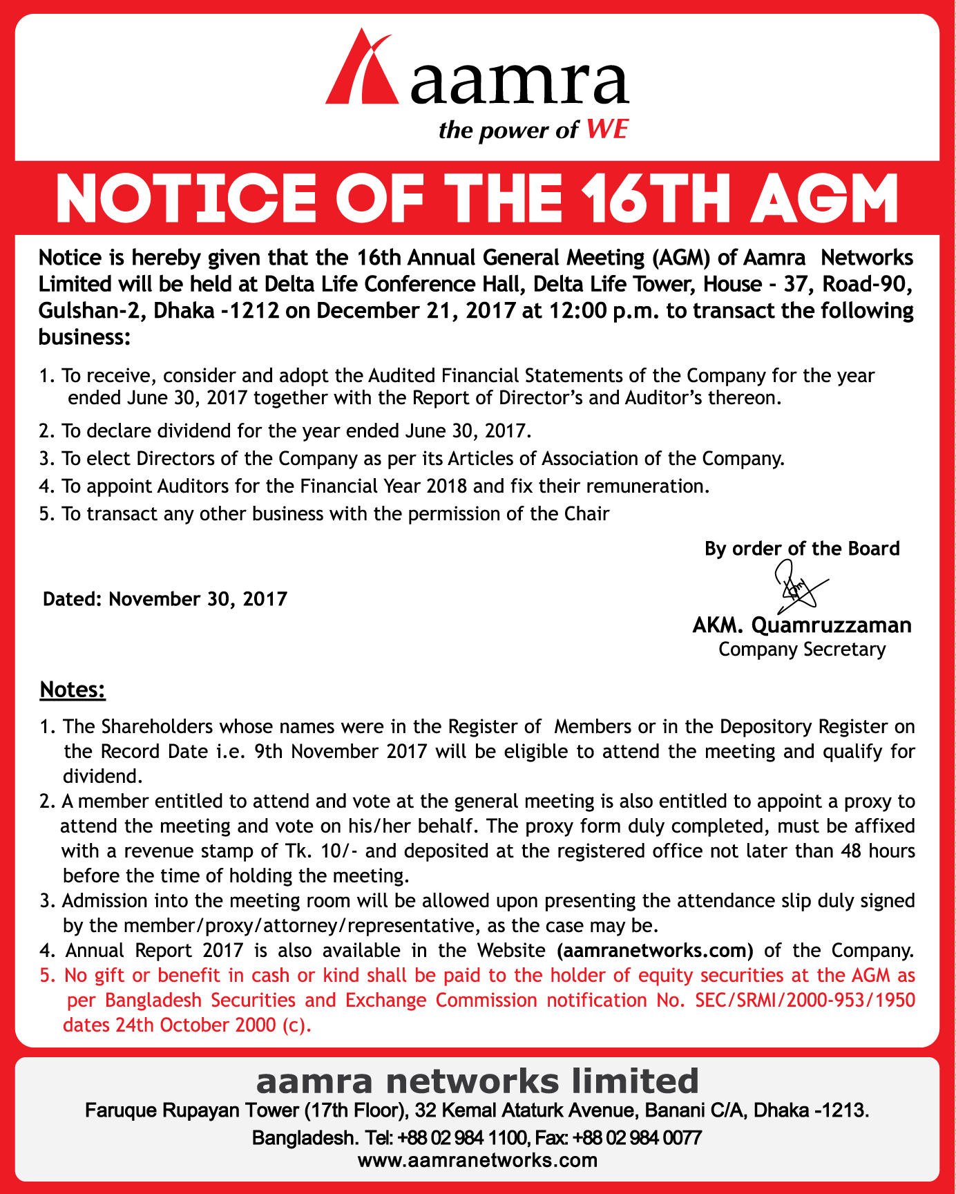 Disclosure of Price Sensitive Information of Aamra Networks Limited