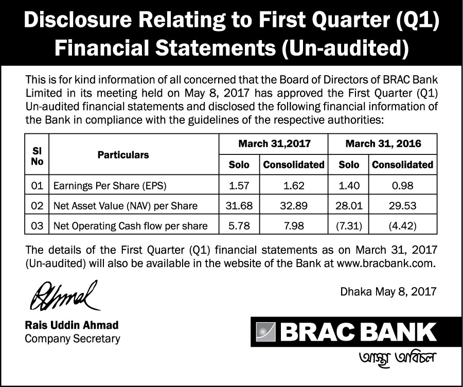 Price Sensitive Information (Q1) of BRAC Bank Limited