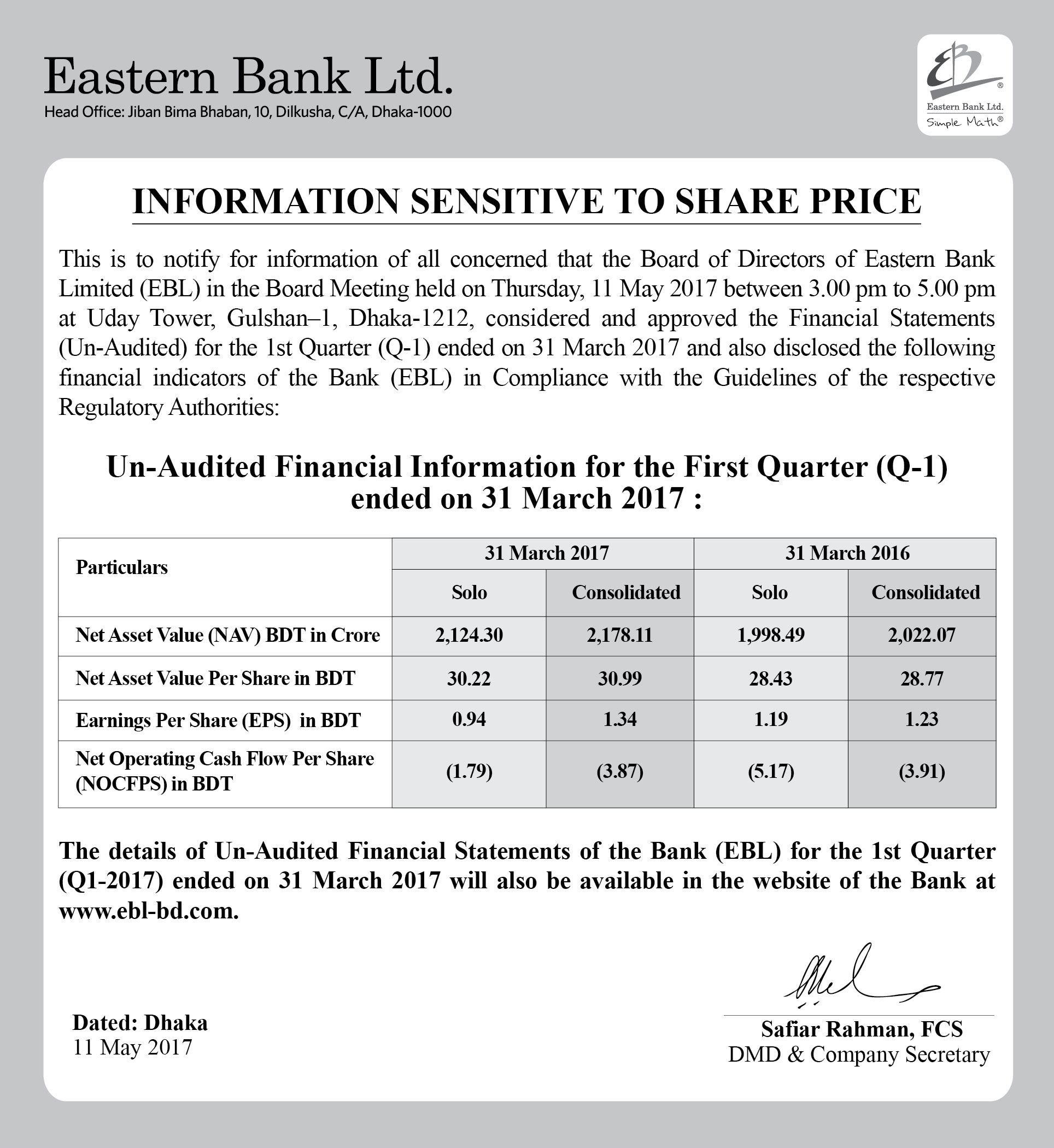 Information Sensitive to Share Price of Eastern Bank Ltd