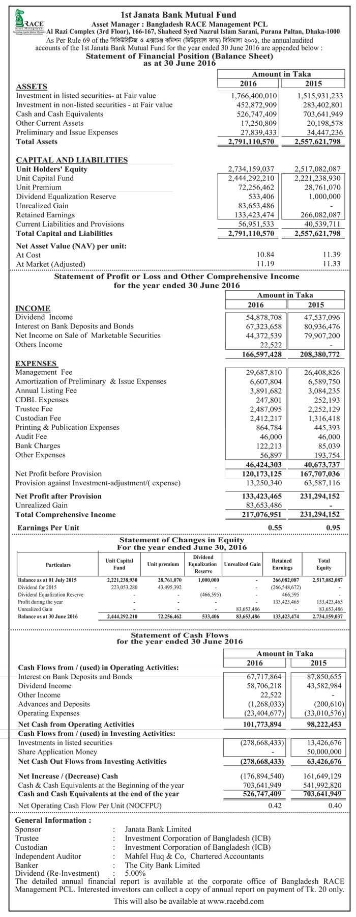 1st Janata Bank Mutual Fund Price Sensitive Information