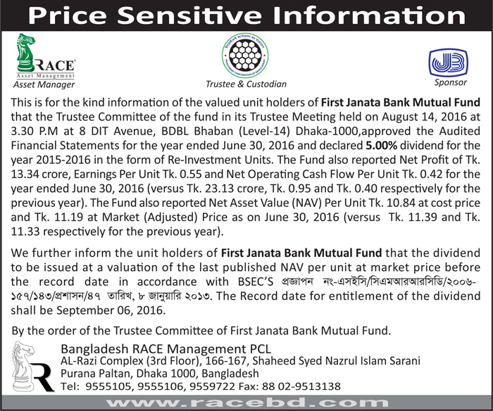 Price Sensitive Information of First Janata Bank Mutual Fund