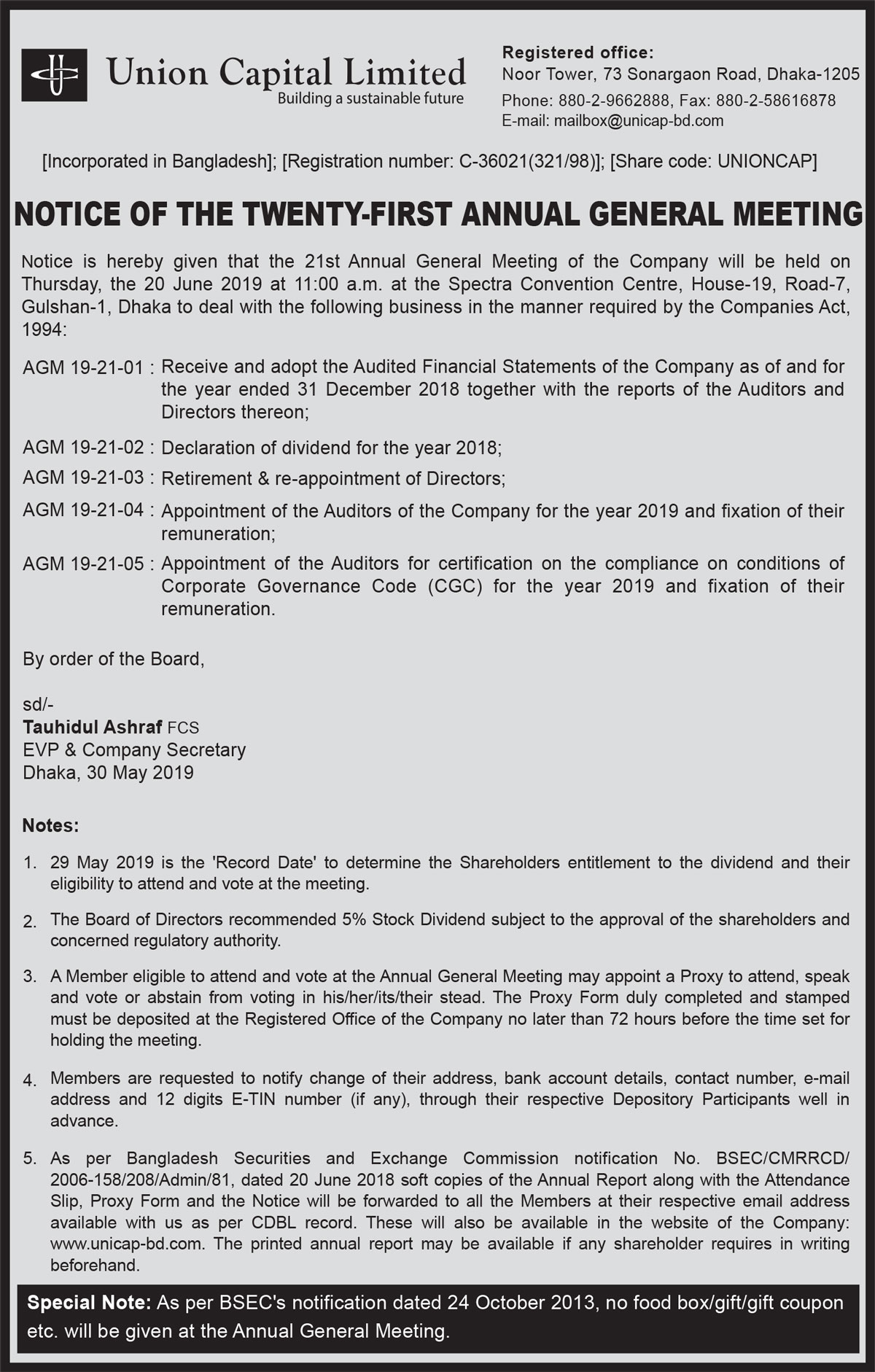 Price Sensitive Information for the First Quarter 2025 of Union Capital Limited