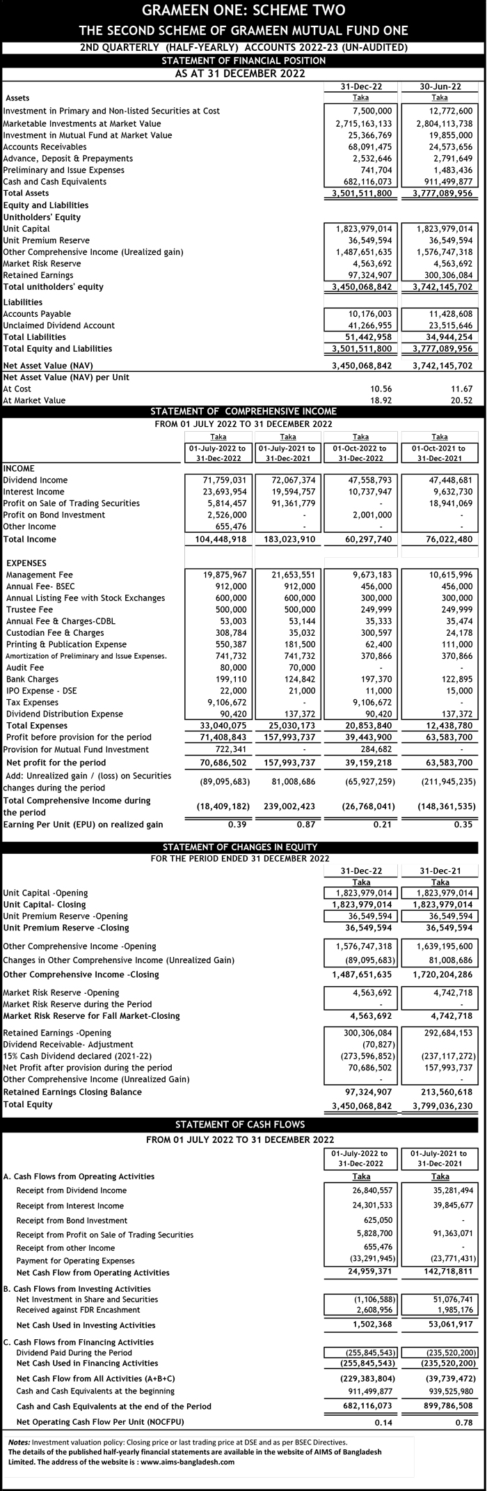 2nd Quarterly Price Sensitive Information (PSI) and Financial Statements of Grameen One: Scheme Two