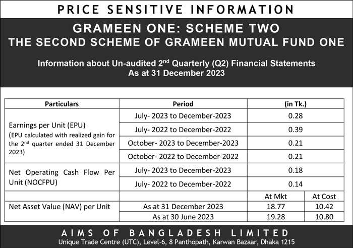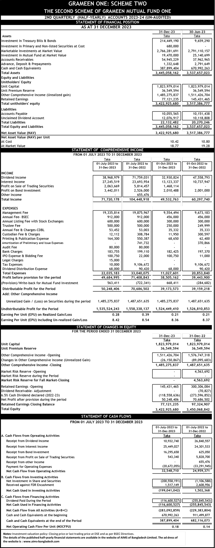 2nd Quarterly Price Sensitive Information (PSI) and Financial Statements of Grameen One: Scheme Two