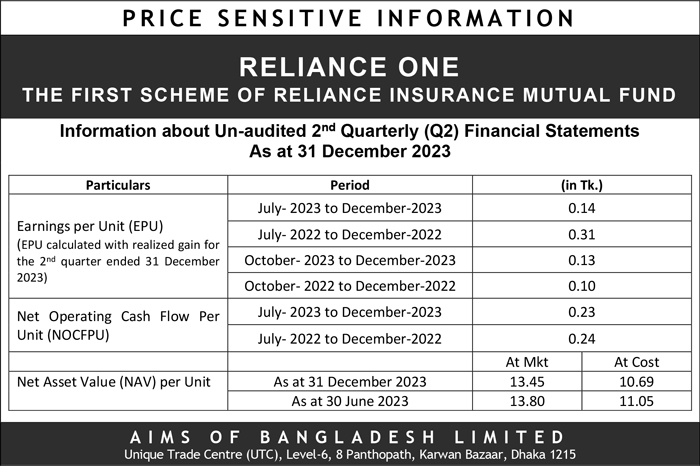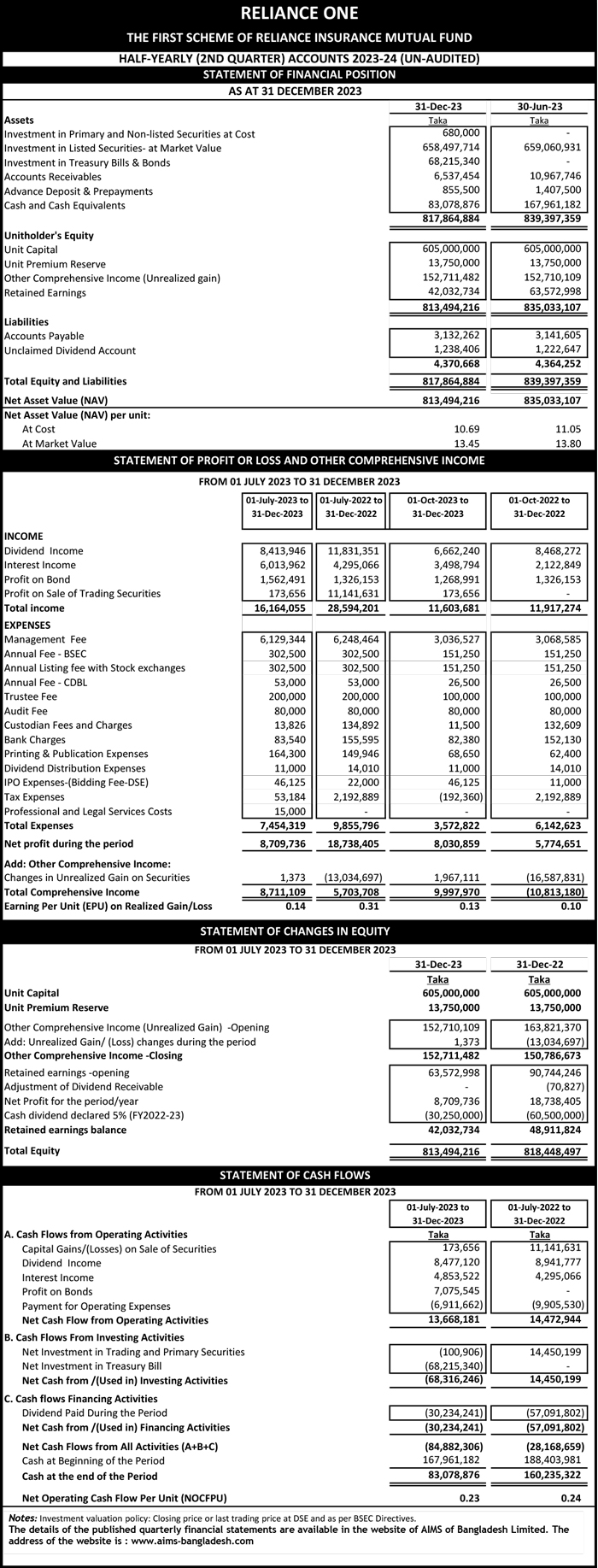 2nd Quarterly Price Sensitive Information (PSI) and Financial Statements of Reliance One