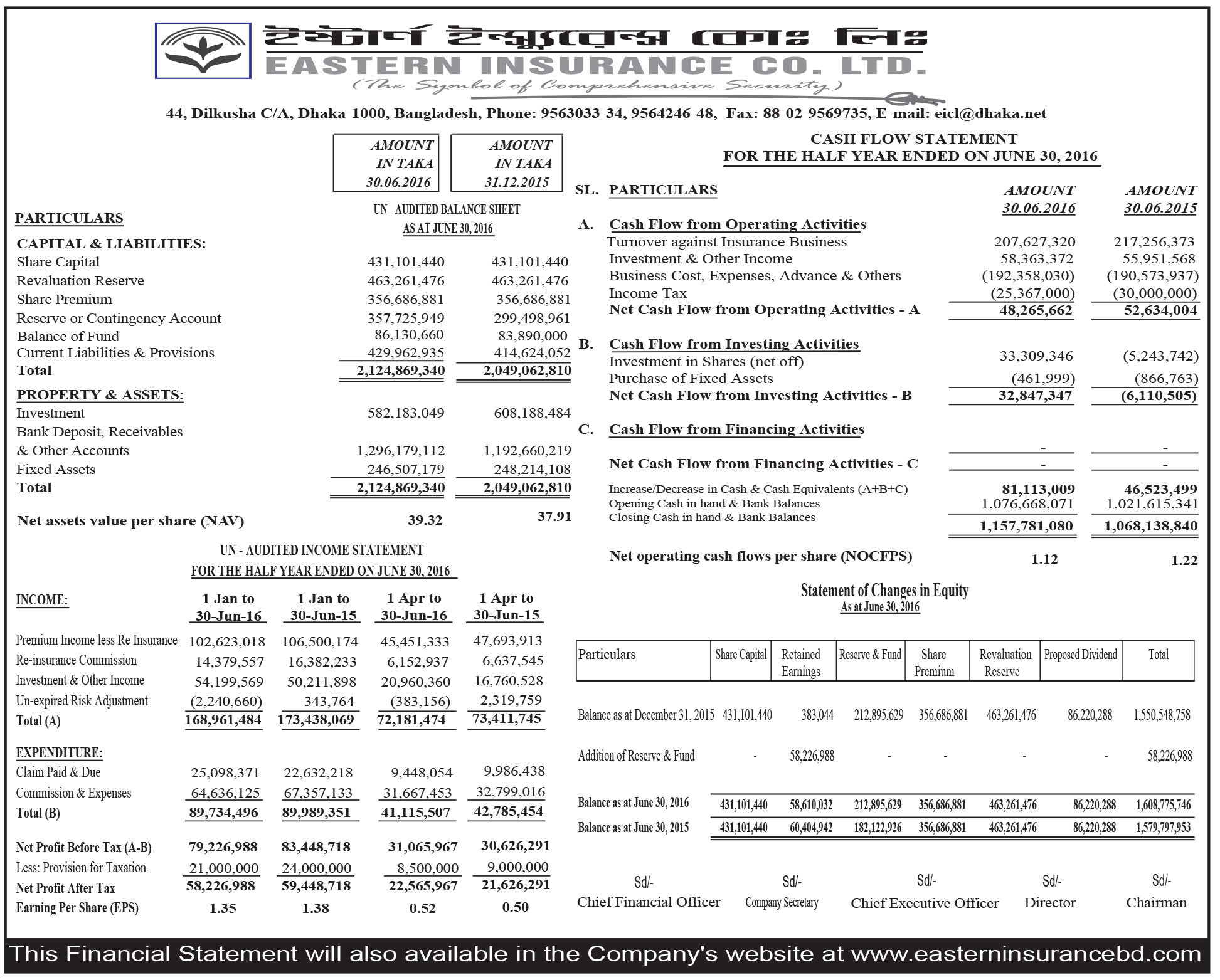 Half Yearly Financial Statements of Eastern Insurance Co. Ltd.