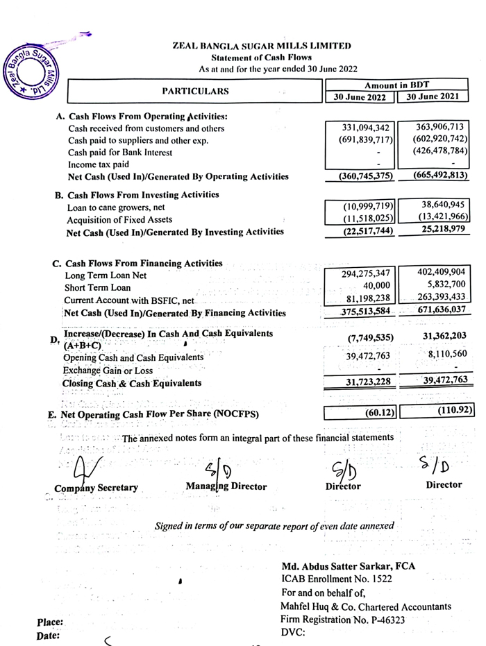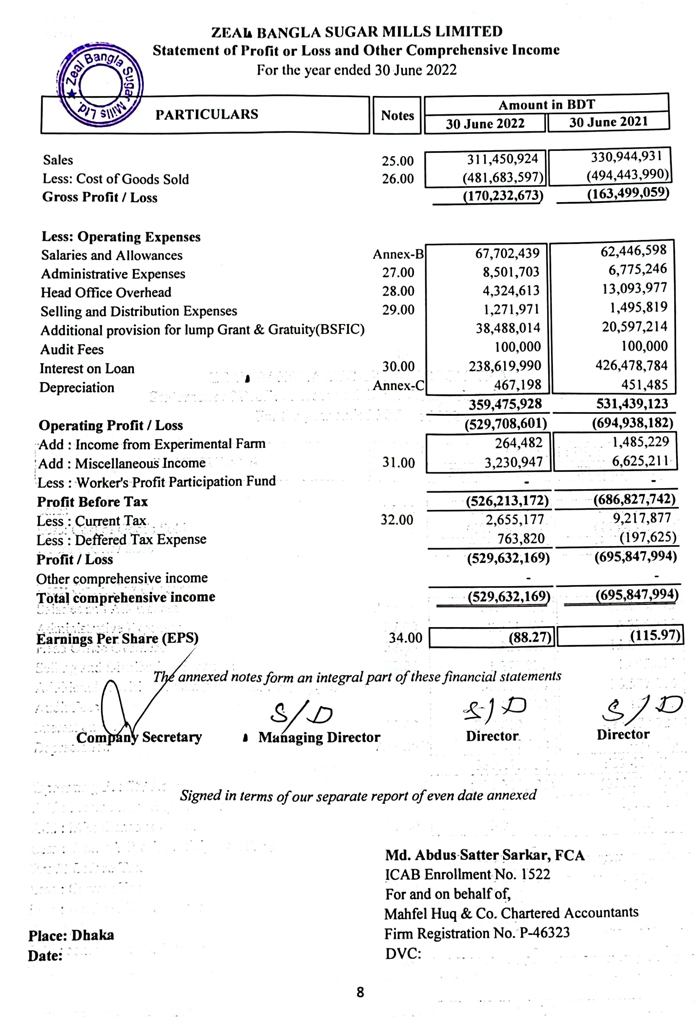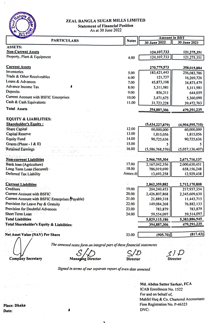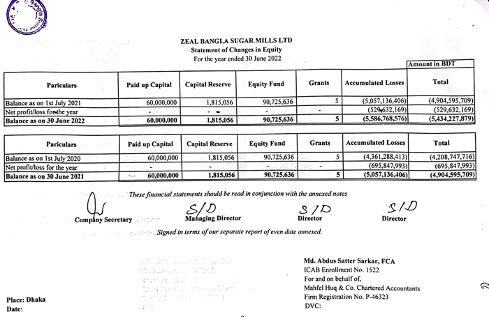 Financial Statements of Zeal Bangla Sugar Mills Ltd