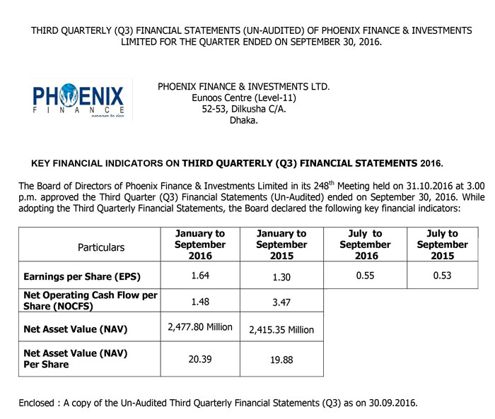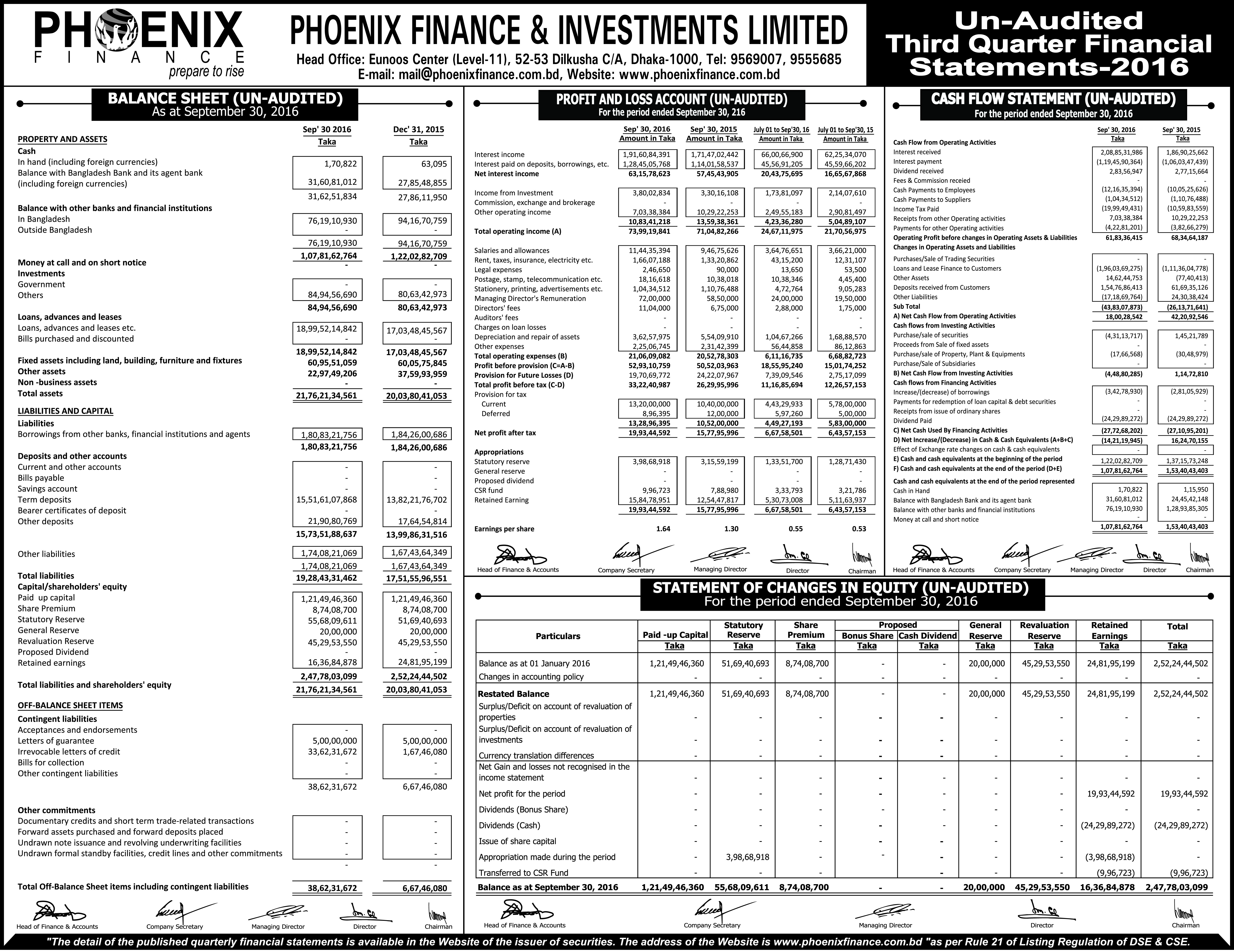 3Q Financial Statement of Phoenix Finance & Investment Ltd.