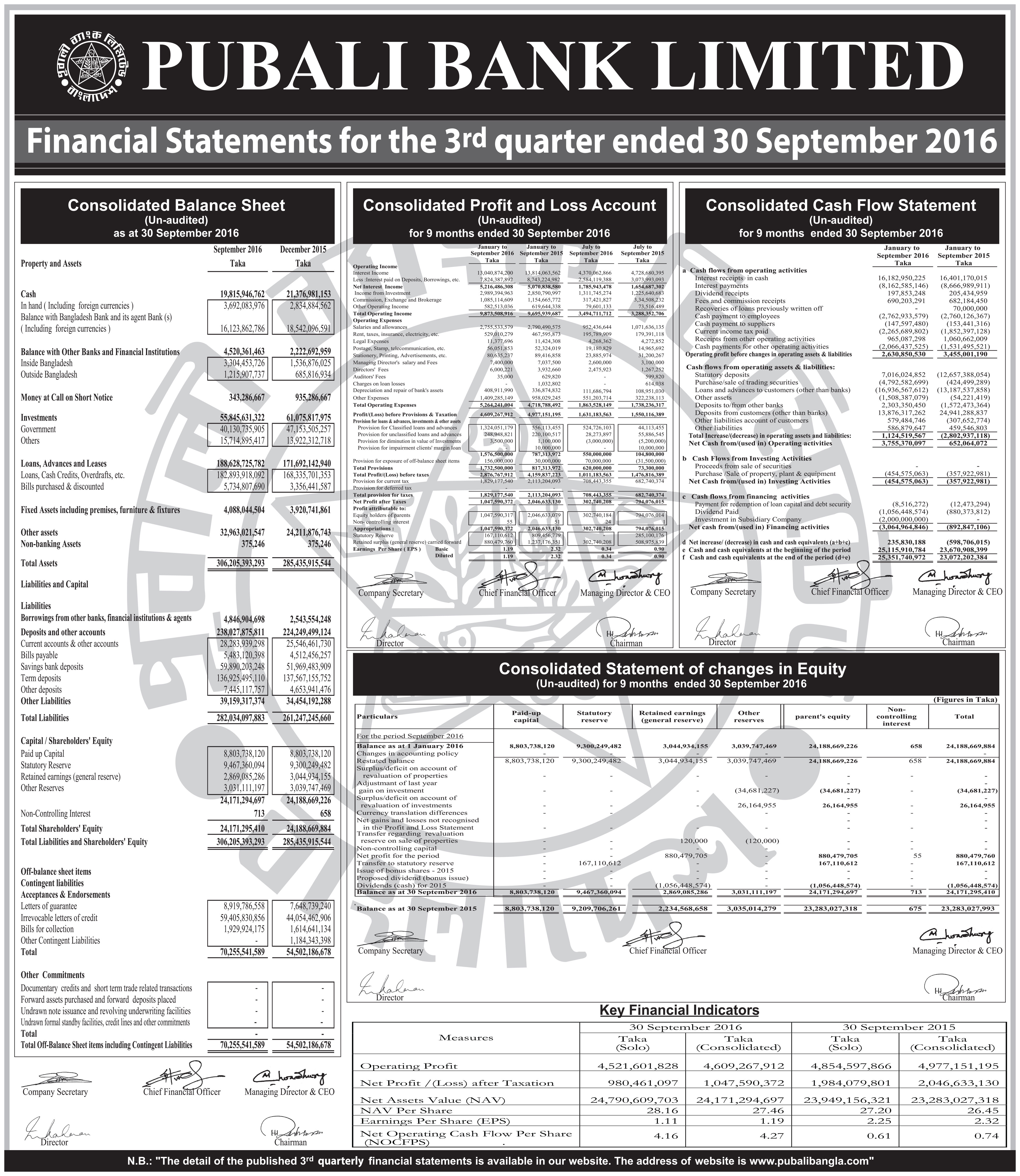 Q3 Financial Statements of Pubali Bank PLC