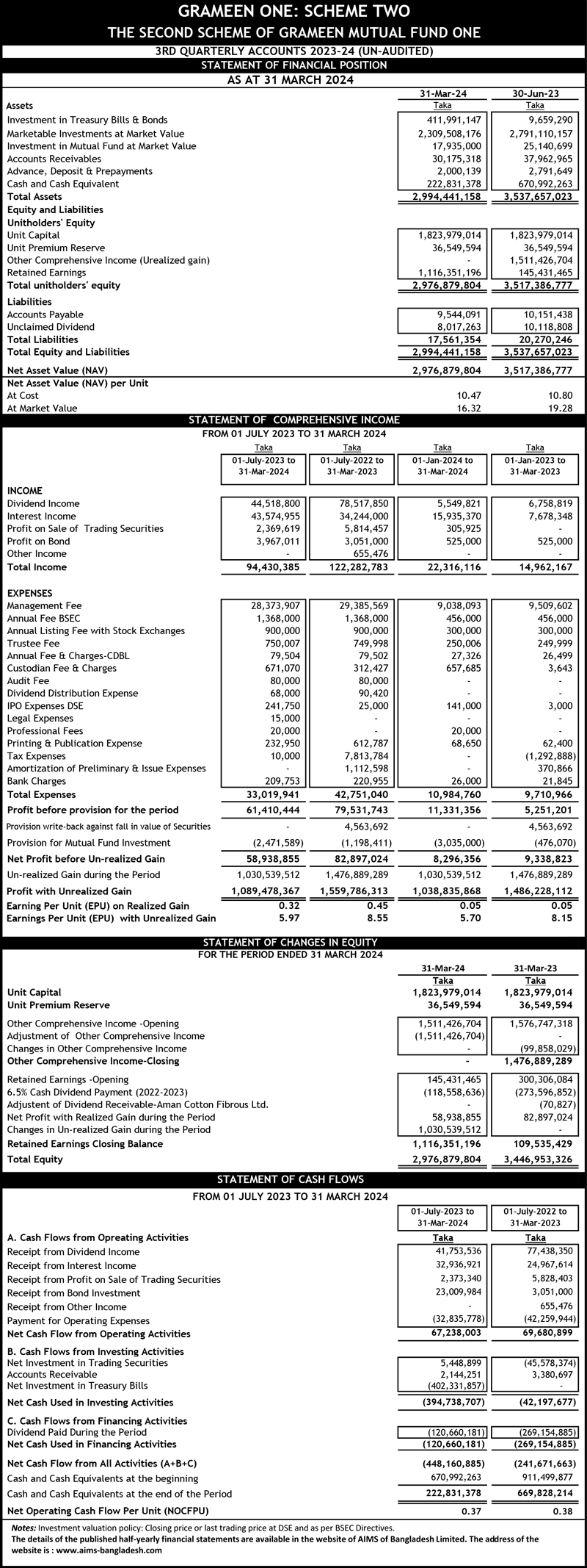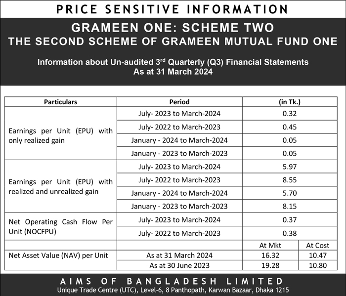 3rd Quarterly Price Sensitive Information (PSI) and Financial Statements of Grameen One: Scheme Two