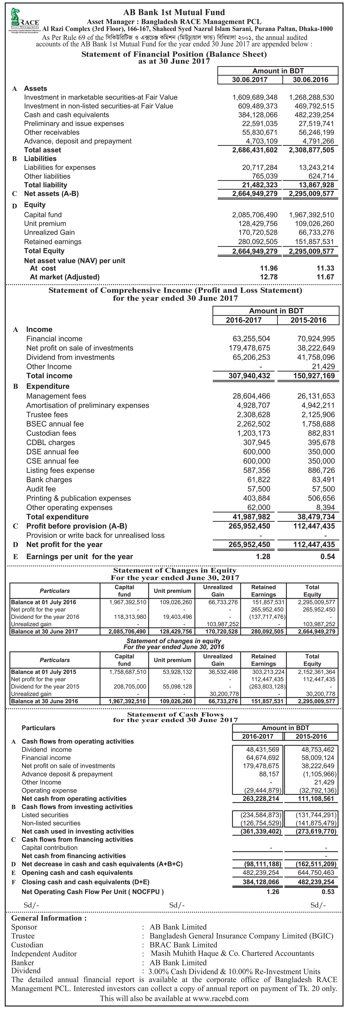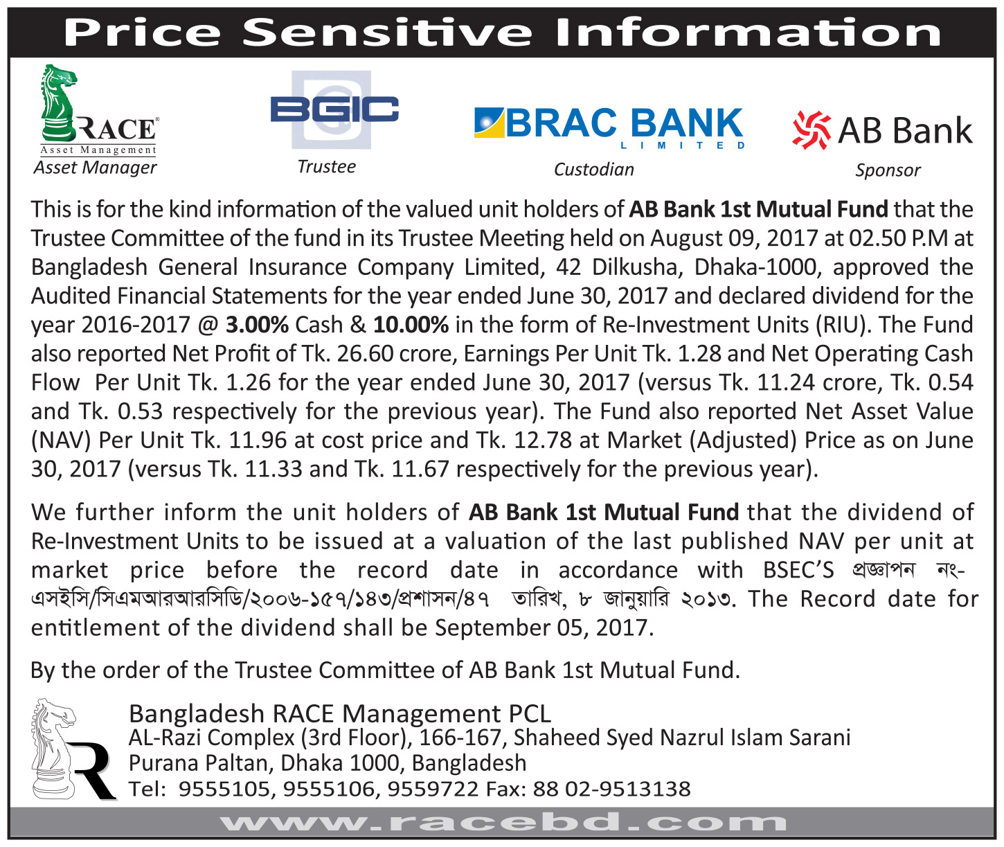 AB Bank 1st Mutual Fund Price Sensitive Information