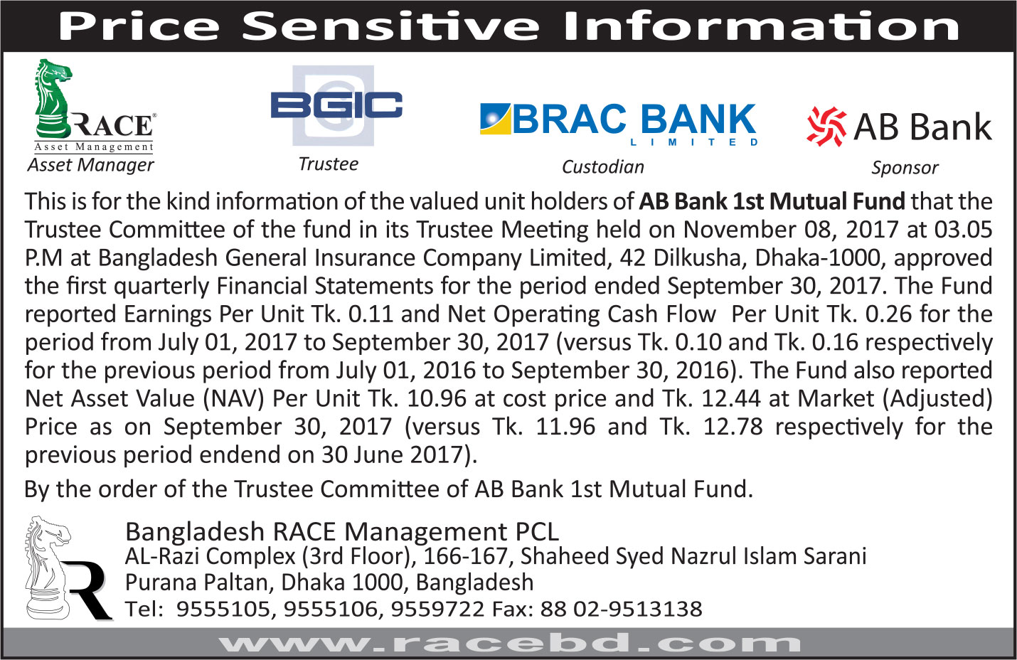 AB Bank 1st Mutual Fund Price Sensitive Information