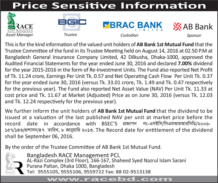 AB Bank 1st Mutual Fund Price Sensitive Information