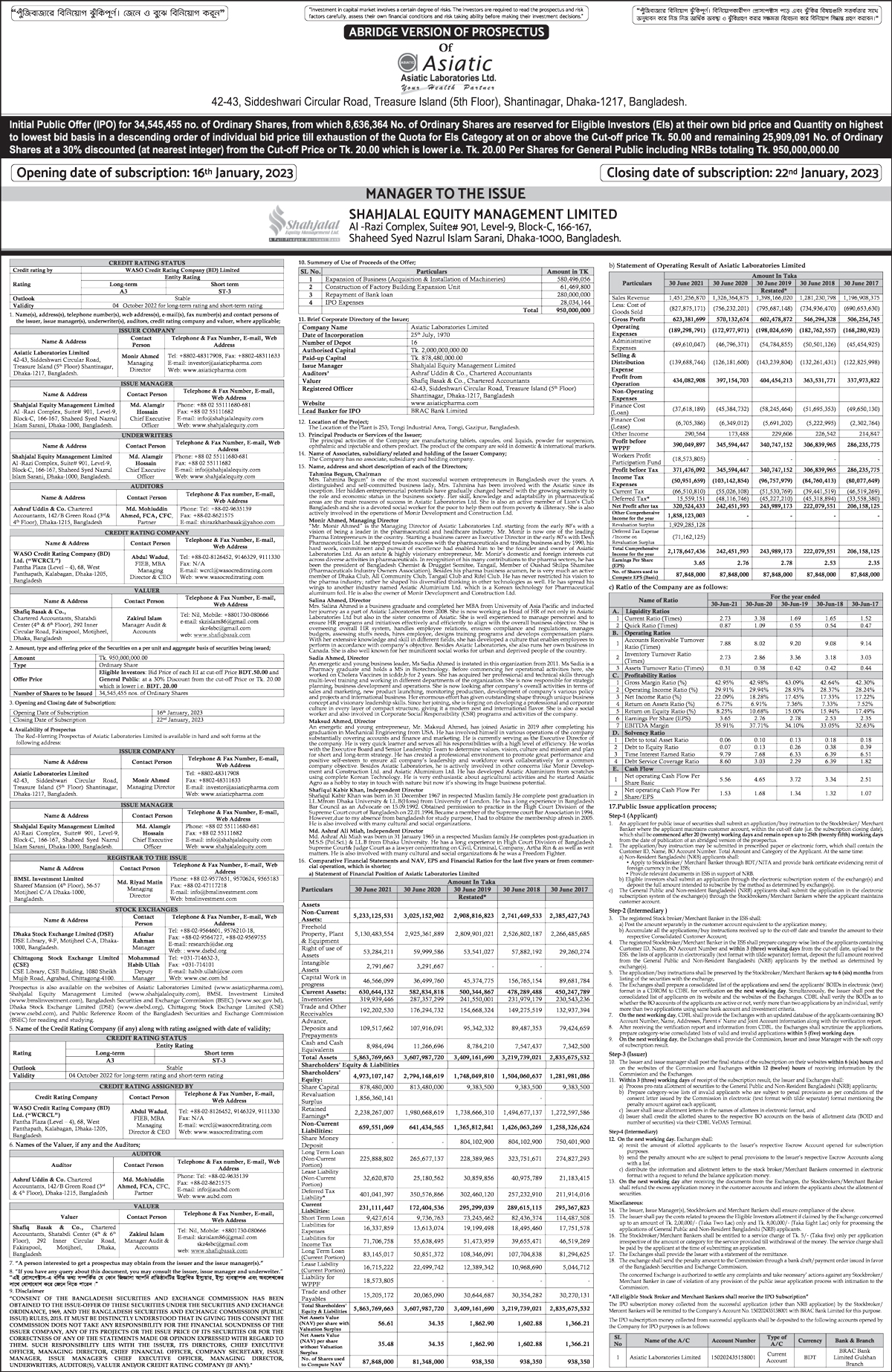 Abridge Version of Prospectus of Asiatic Laboratories Limited
