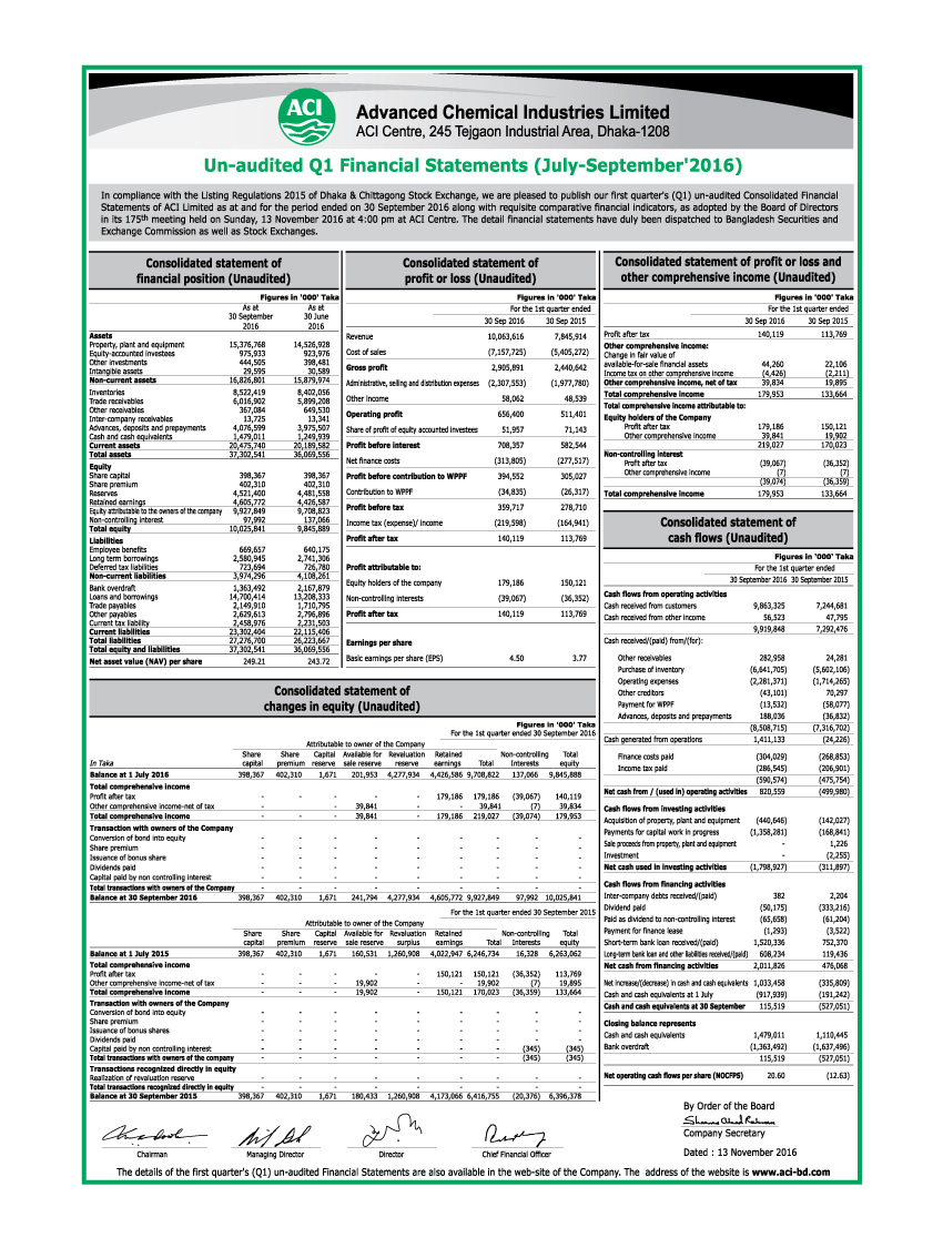 Q1 Financial Statements of ACI Limited