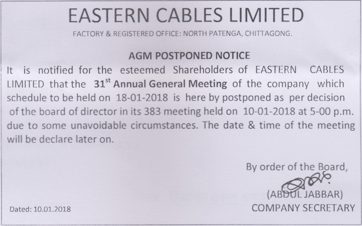 3rd Quarter Financial Statement (Un-audited) of Eastern Cables Limited