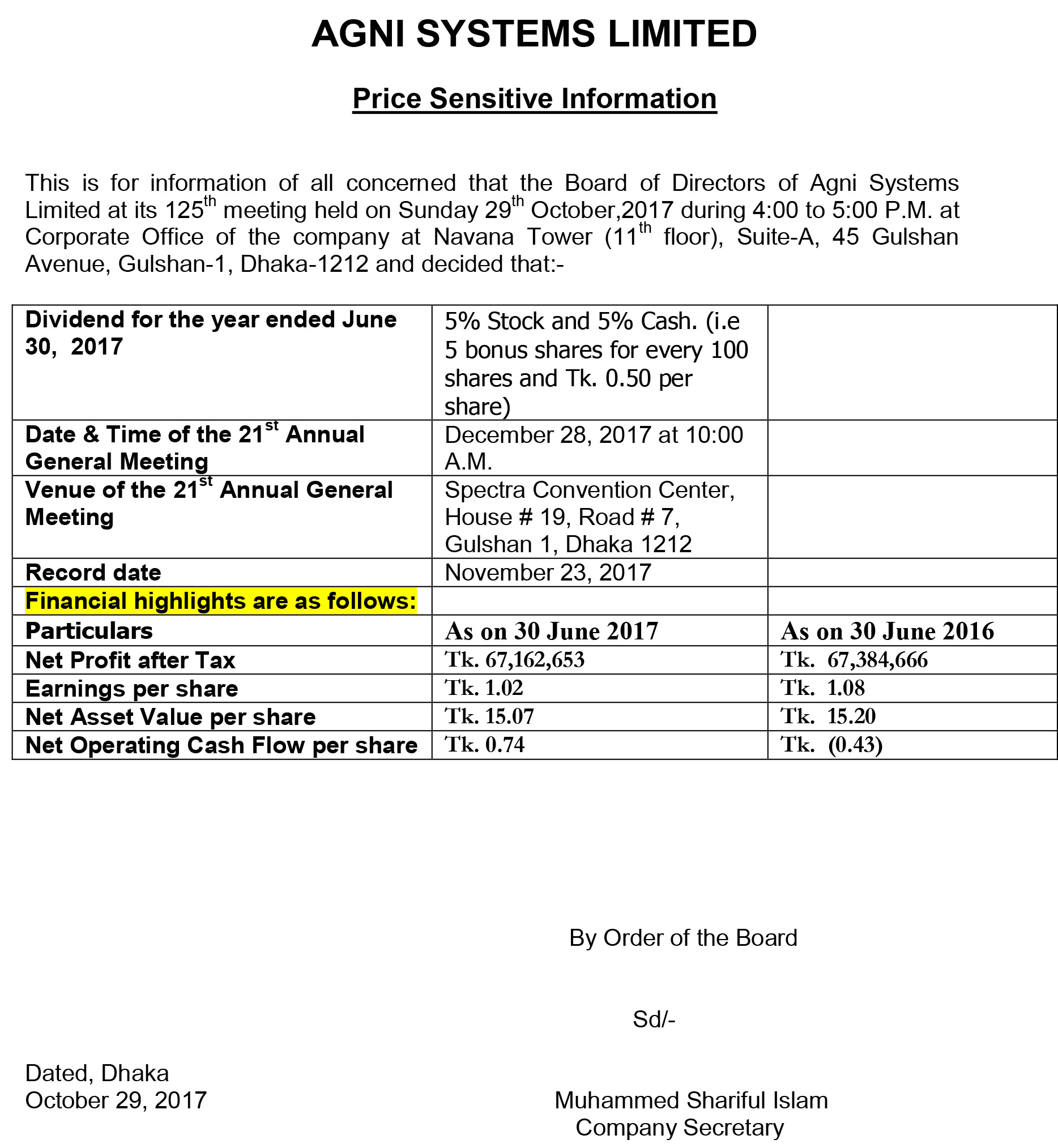 1st Quarter Un-Audited Financial Statements Of Agni Systems Ltd