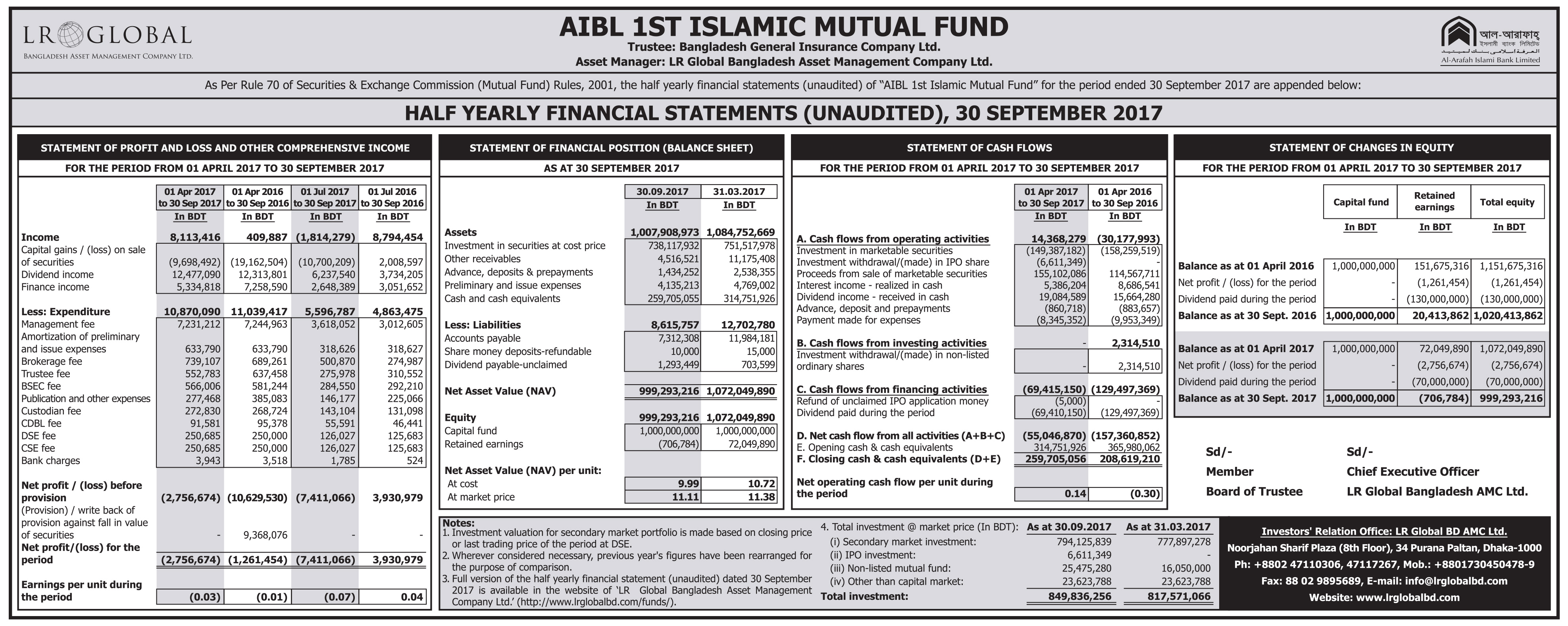 Half Yearly Financial Statements (unaudited) of AIBL 1st Islamic Mutual Fund