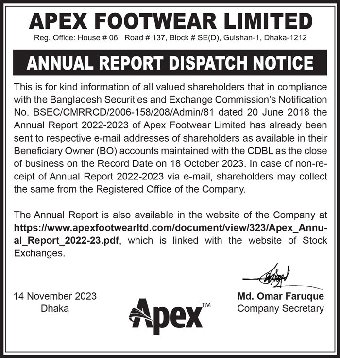 Annual Report Dispatch Notice of Apex Footwear Limited