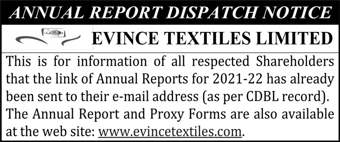 Annual Report Dispatch Notice of Evince Textiles Ltd