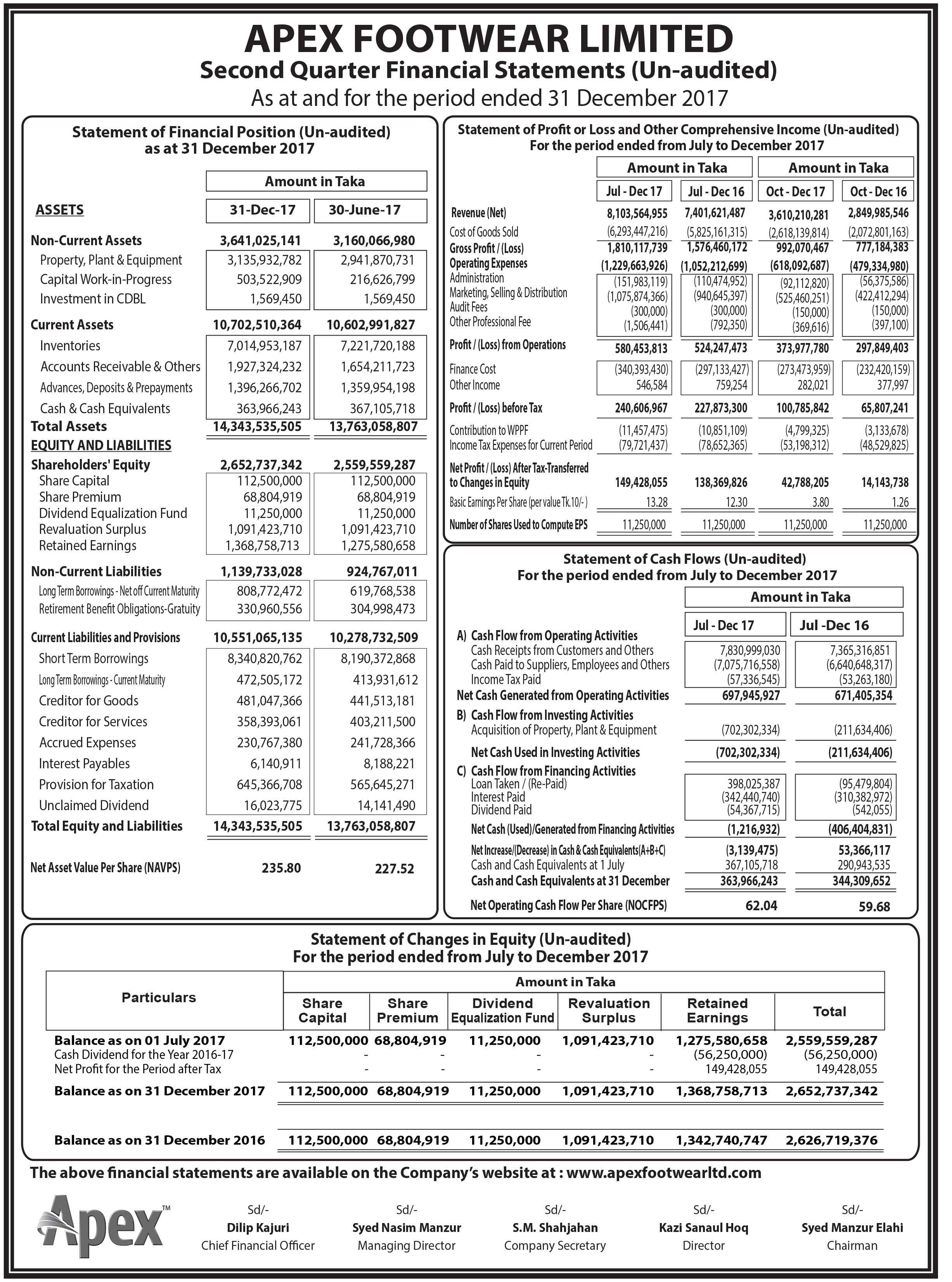 Apex Footwear Limited Q2 Financial Statements (Un-audited)