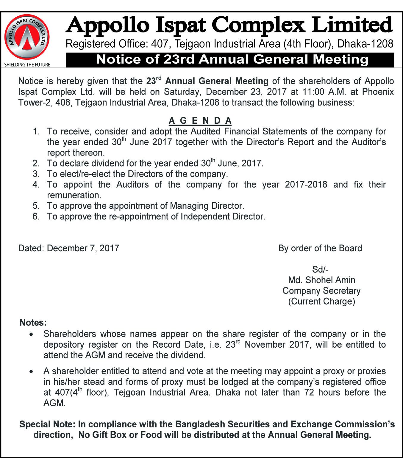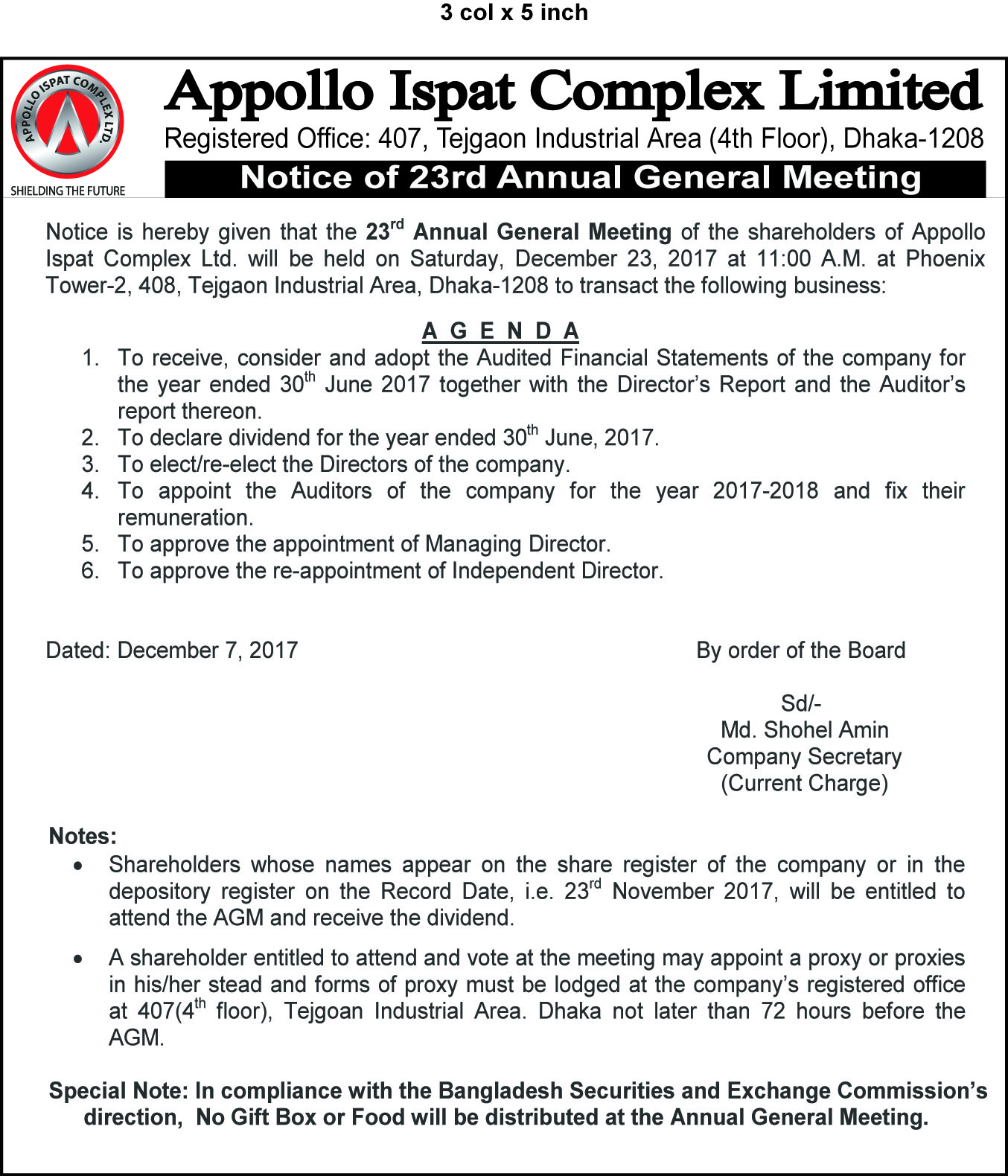 Appollo Ispat Complex Limited 23rd Annual General Meeting