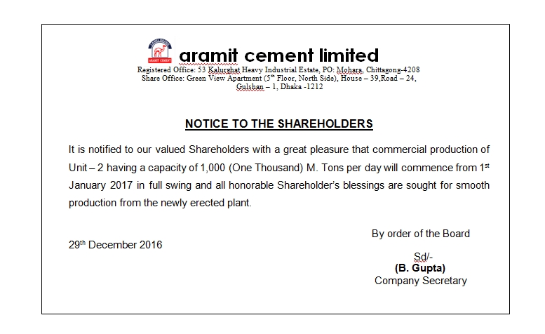 ARAMIT CEMENT LTD PRICE SENSITIVE INFORMATION