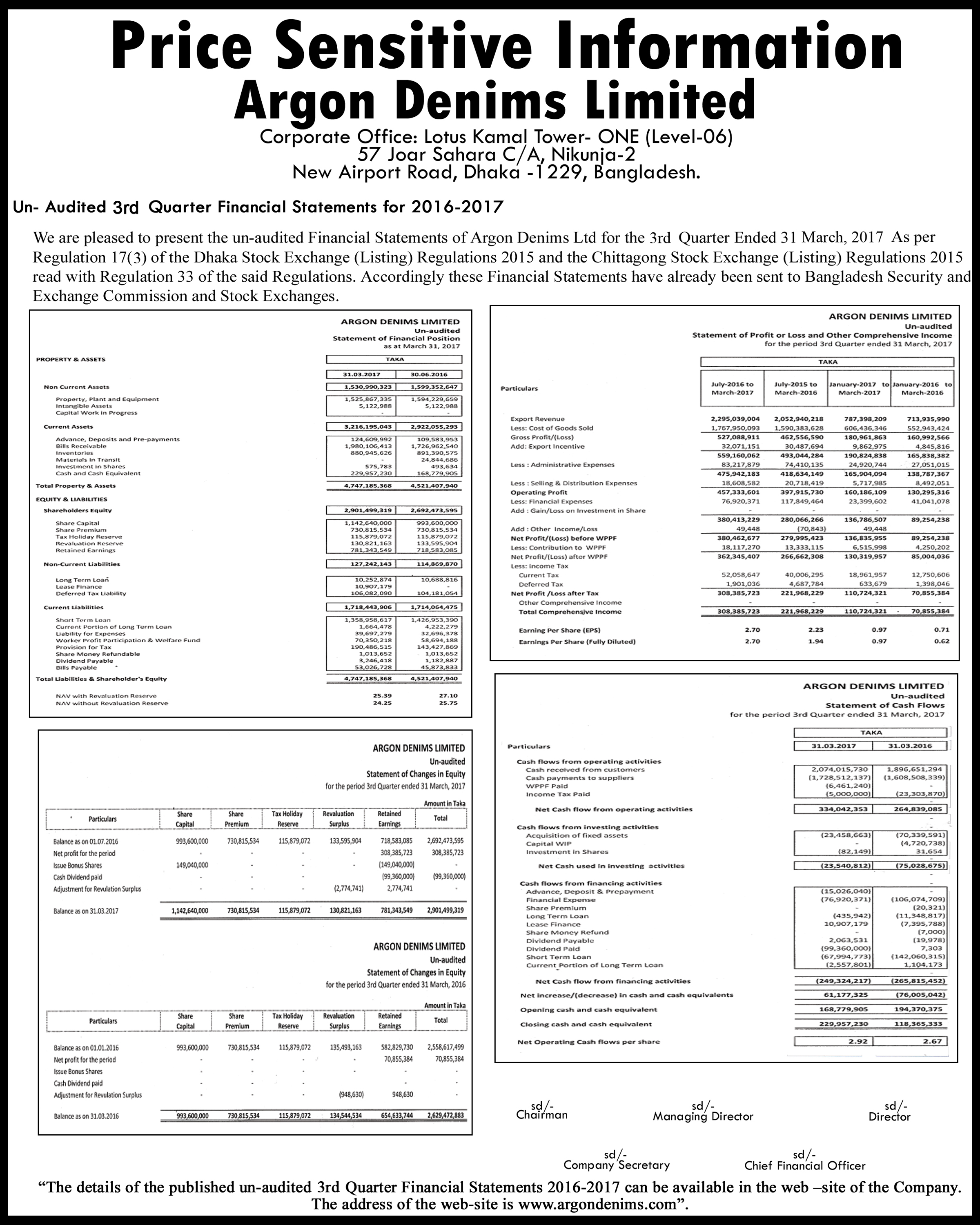 Q2 Un-audited Financial Statements of Argon Denims Limited