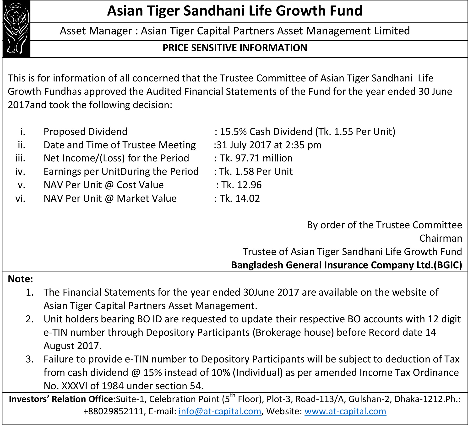Price Sensitive Information of Asian Tiger Sandhani Life Growth Fund