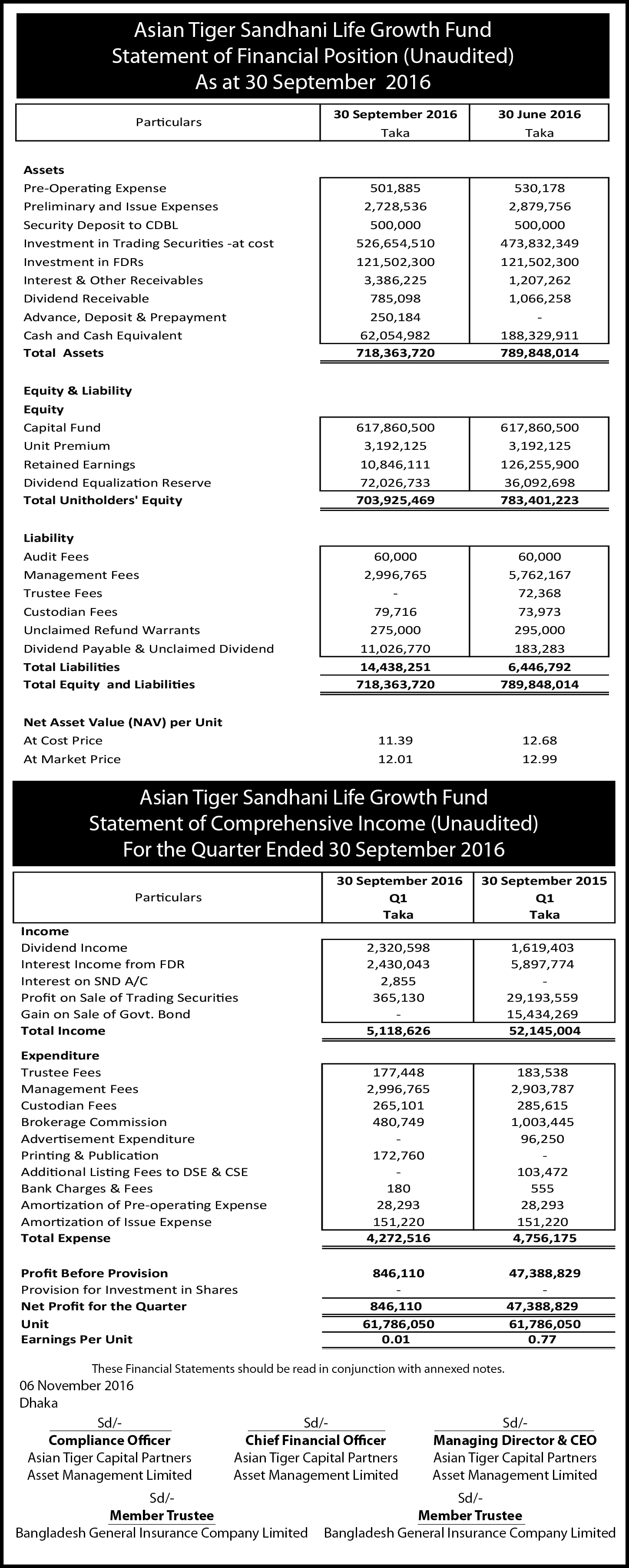 Q3 Financial Statements of Asian Tiger Sandhani Life Growth Fund